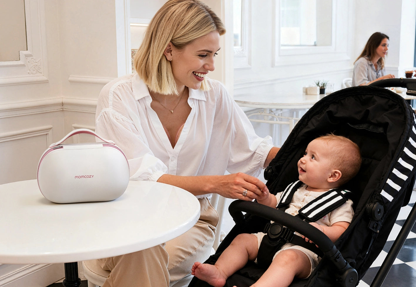 Its wireless charging case provides up to 15 pumping sessions or 5 days of use, streamlining the routine by eliminating messy cords and integrating storage. With an ultra-quiet operation (<45dB), moms can pump discreetly without disturbing others. The Momcozy app integration enables seamless pumping mode switching, real-time tracking, and full-collector notifications, making it a truly hands-free, smart pumping solution.