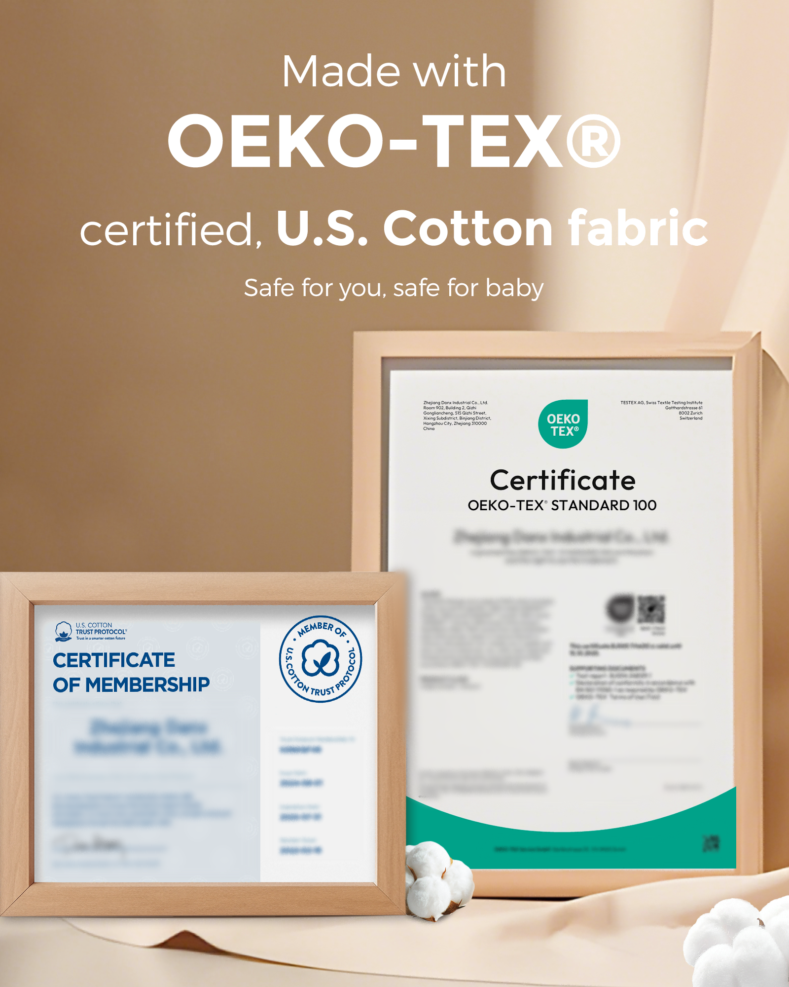 Crafted from premium American-grown cotton, the fabric feels soft and breathable, like a second skin. Certified by OEKO-TEX for safety and sustainability, it is eco-friendly and ideal even for sensitive skin, combining comfort with conscious care.